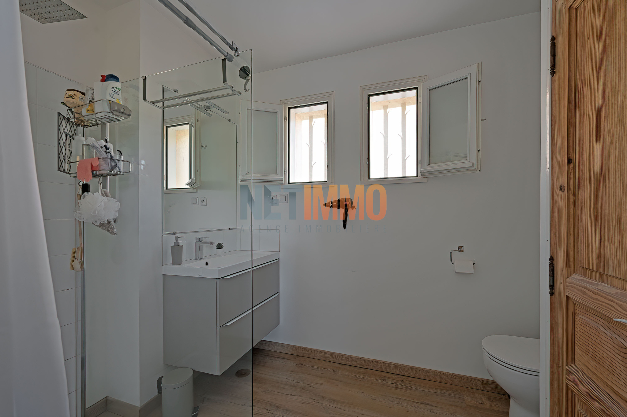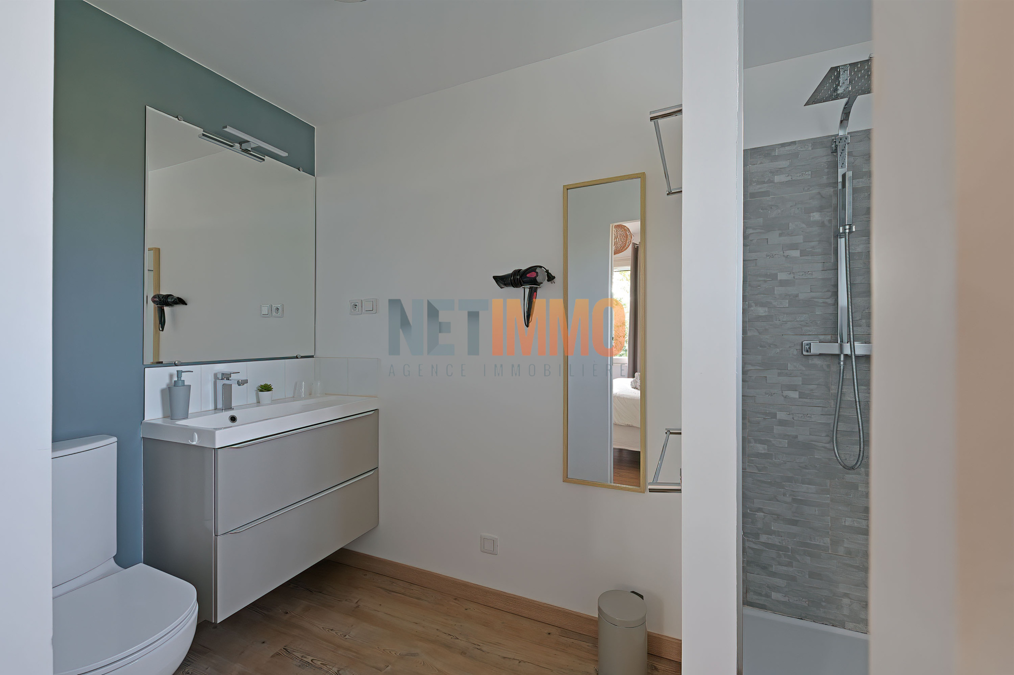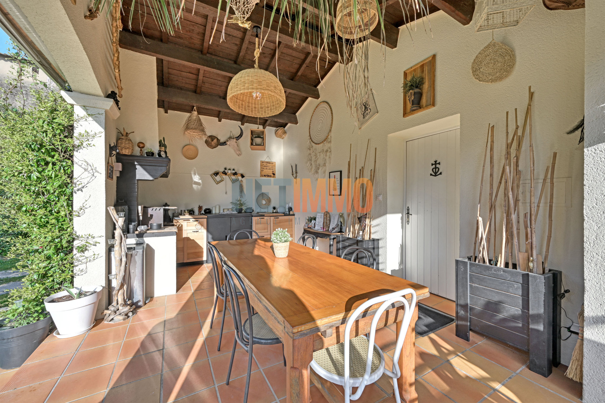 L’extérieur, pensé pour la détente et la convivialité, propose une grande piscine, une cuisine d’été avec barbecue, une douche extérieure, un boulodrome et un grand parking.