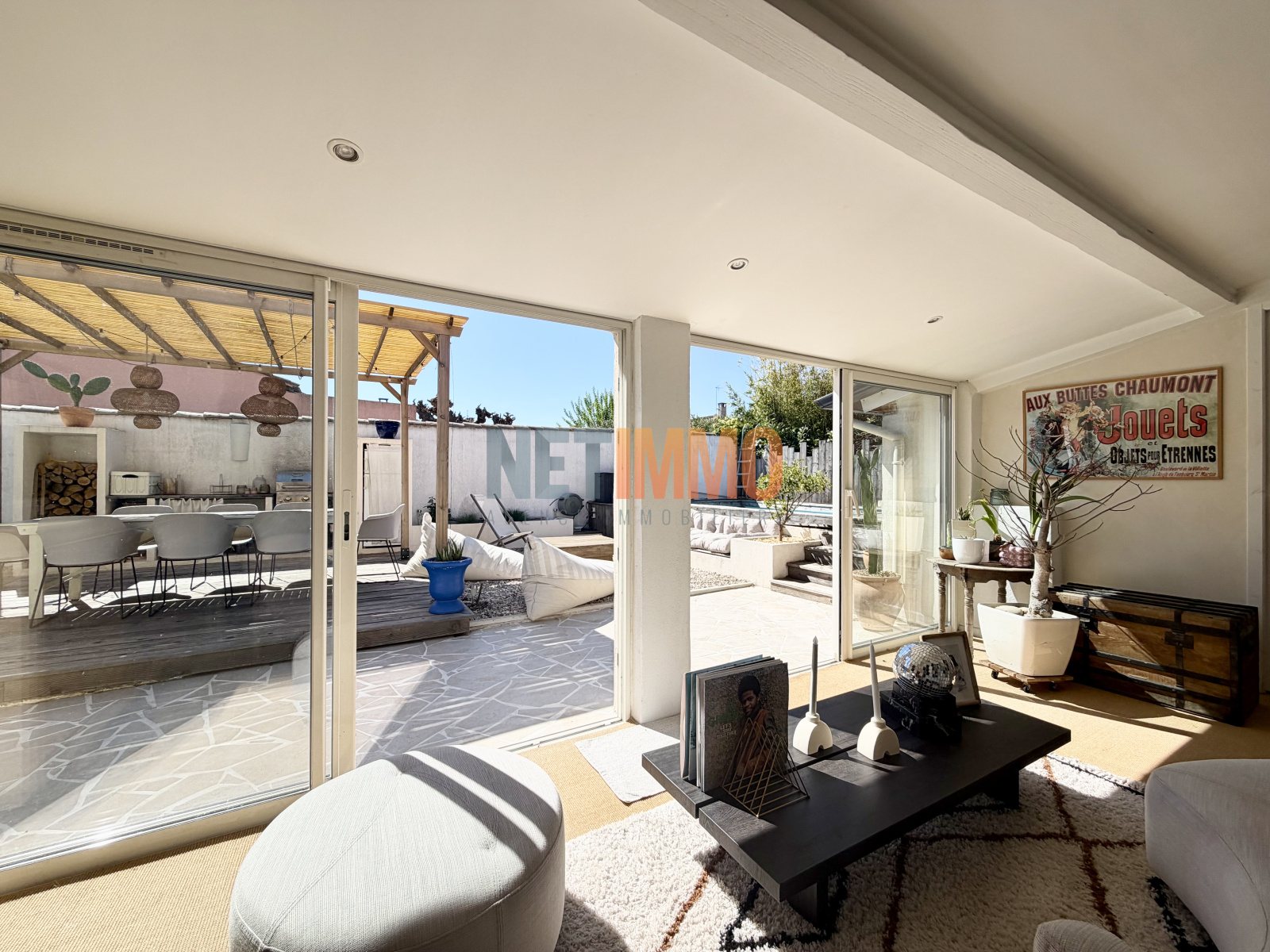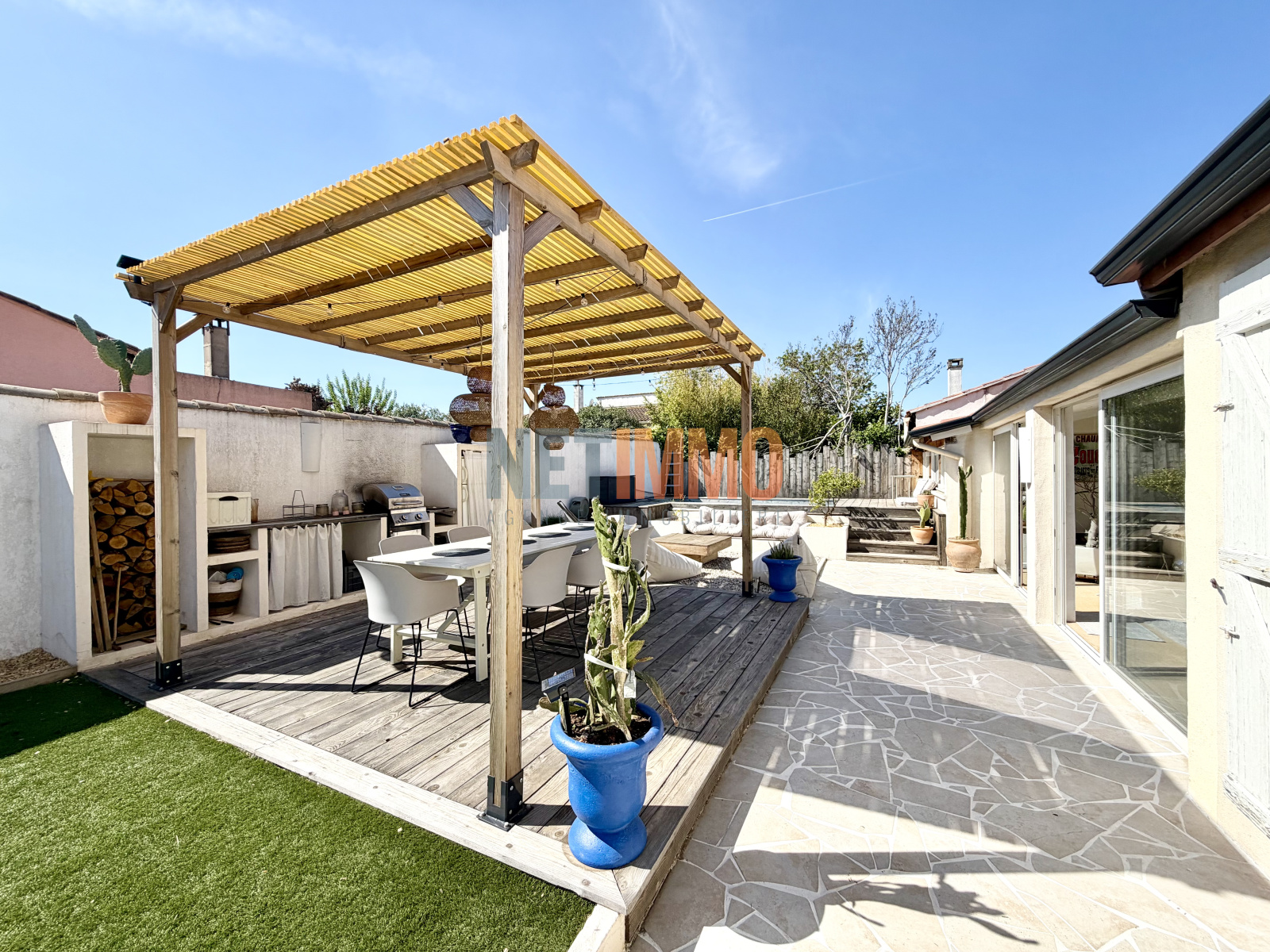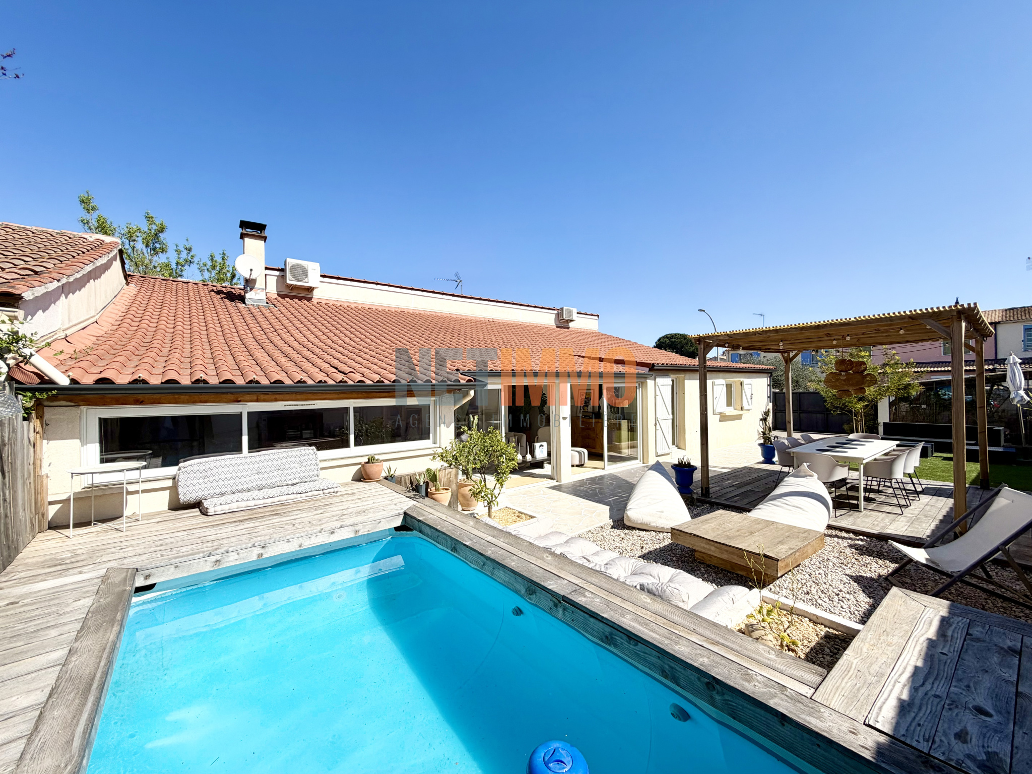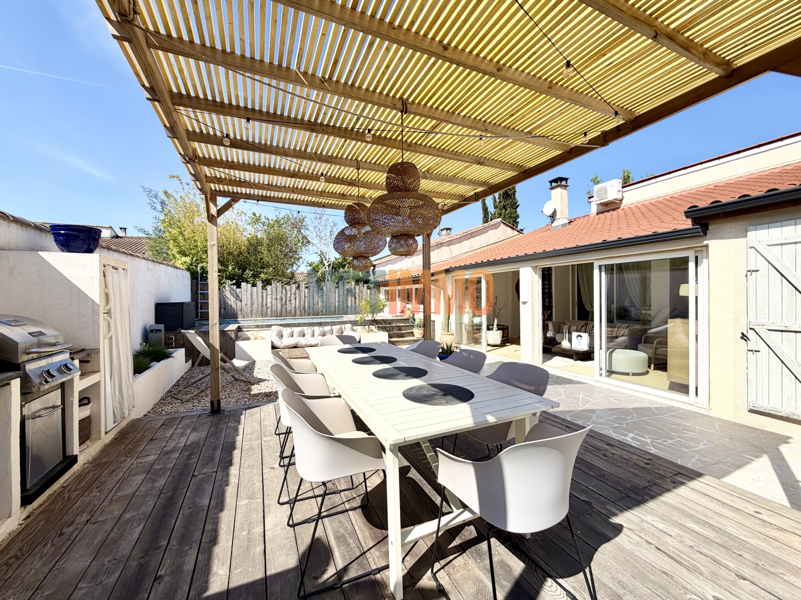 À Vauvert, découvrez cette villa de plain-pied entièrement rénovée en 2023, d’environ 154 m², édifiée sur une parcelle d’angle de 591 m² avec double accès (deux portails).