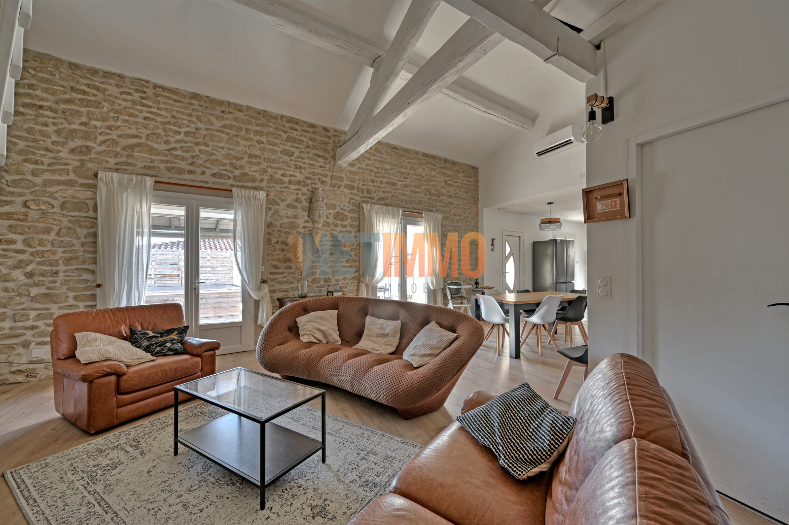 Dès l'entrée, on est séduit par le cachet de ses pierres et poutres apparentes, du volume de son salon et de l'intimité de son exterieur.