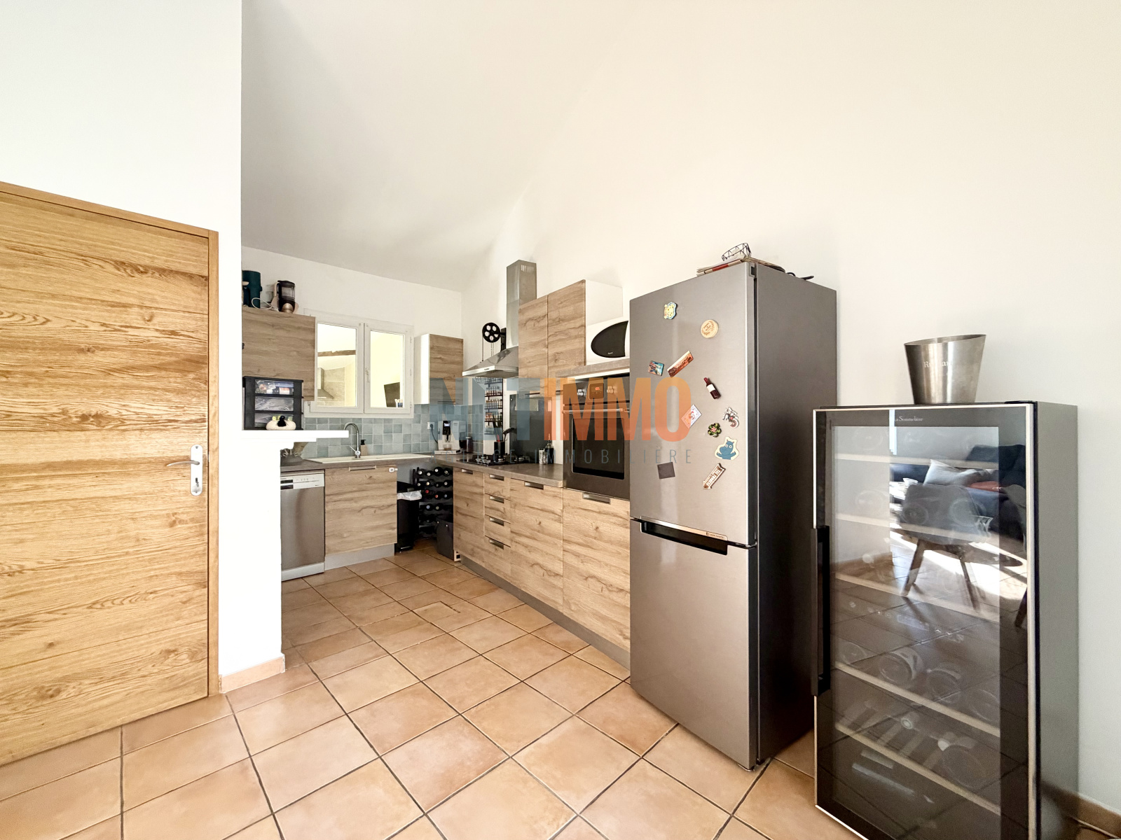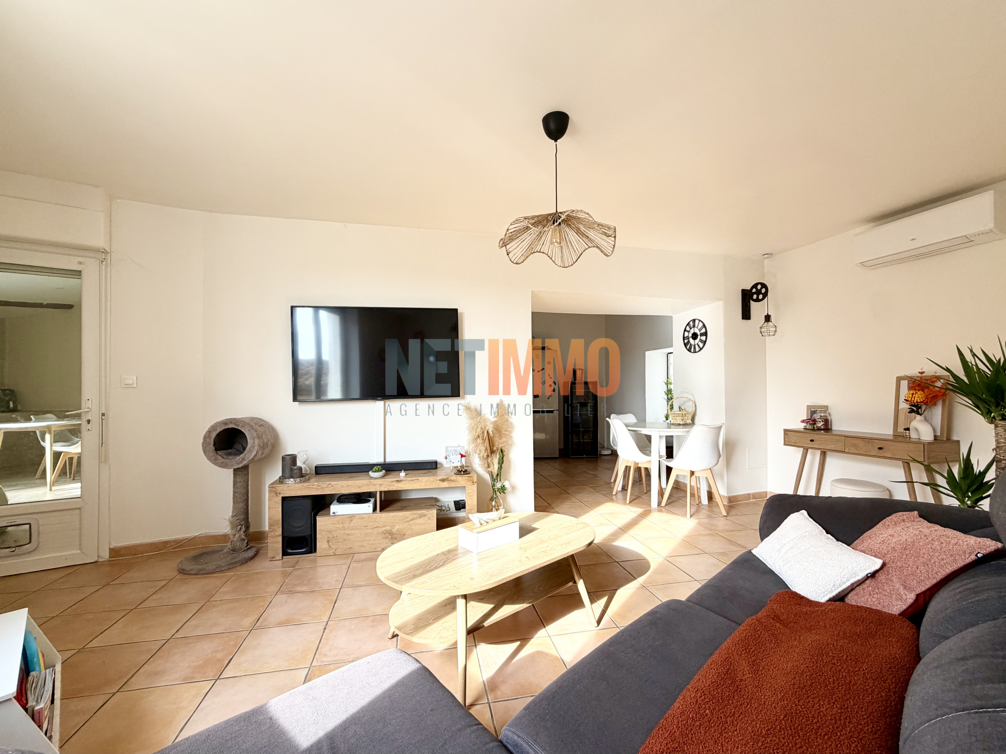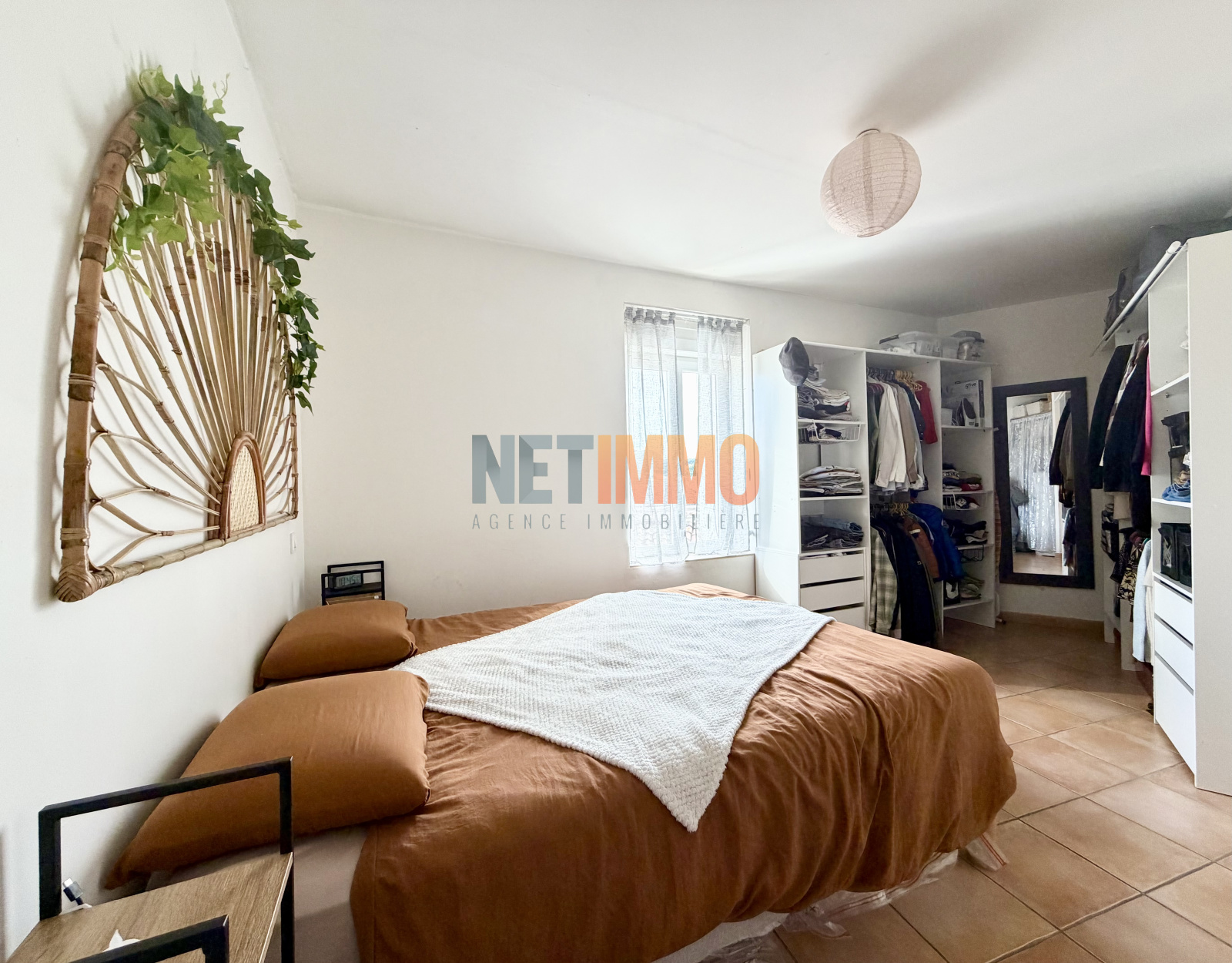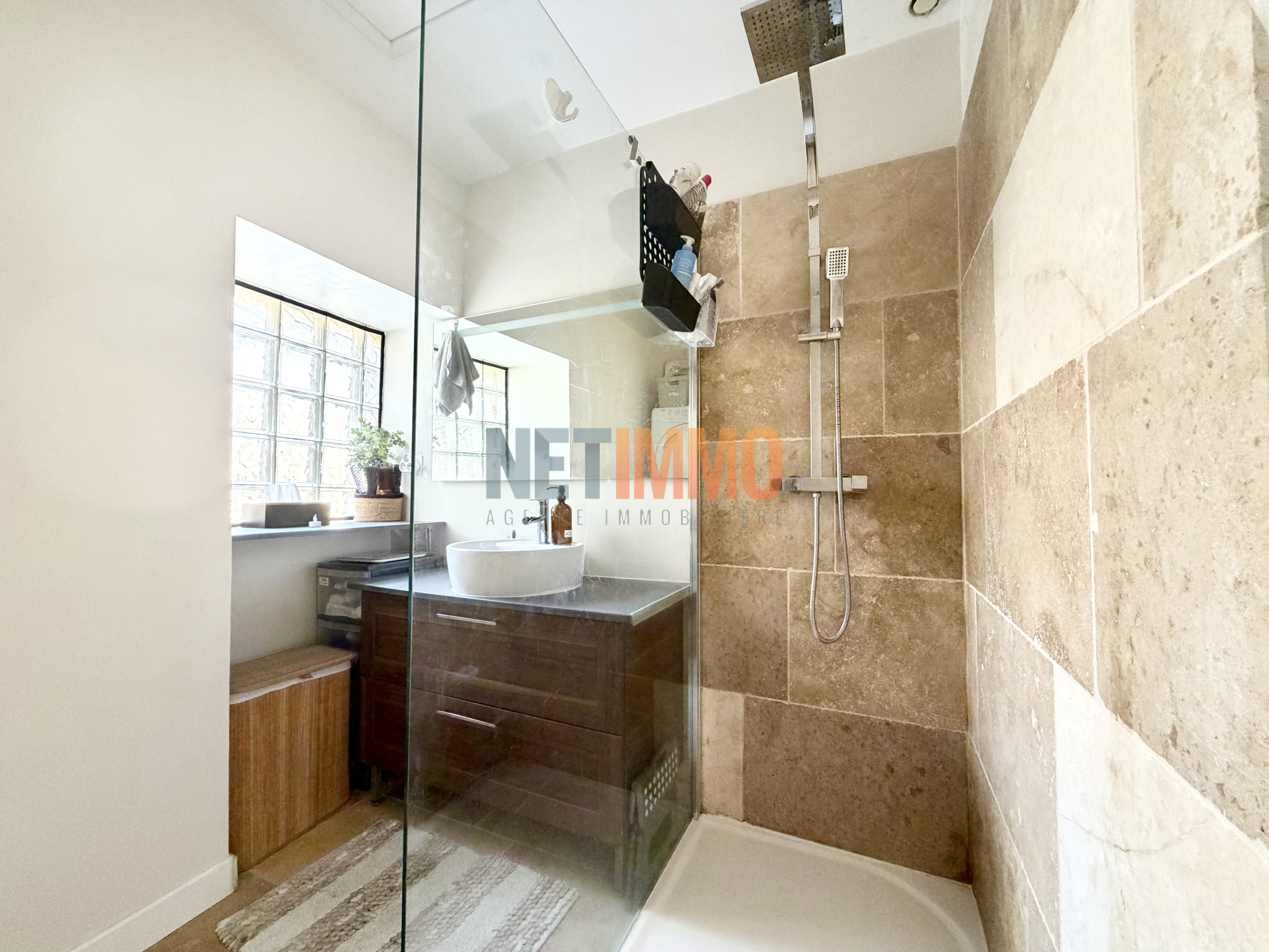 A l'étage la partie vie exposée plein sud rend le bien très lumineux et agréable, il se compose d'un séjour/cuisine de 35m², 2 chambres, une salle d'eau et un espace "terrasse fermée" pouvant être transformé en terrasse ouverte ou en chambre.
