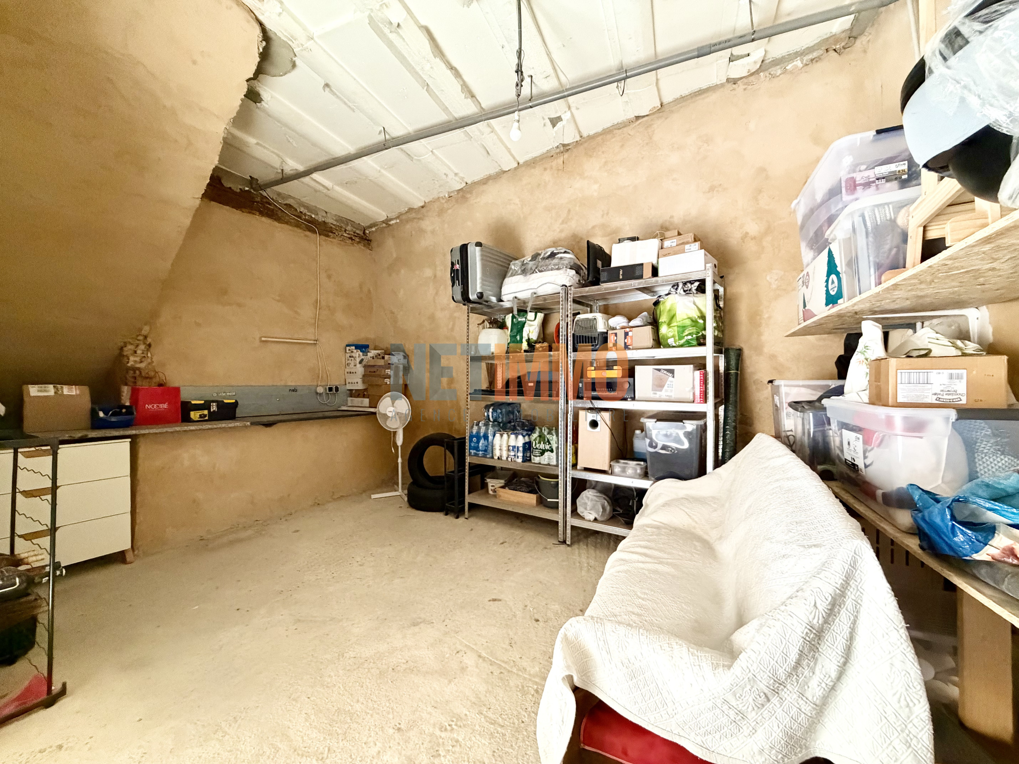 Elle se compose au rez-de-chaussée d'un grand garage d'environ 70m² pouvant accueillir deux voitures, des véhicules deux roues, un atelier, etc... Porte de garage électrique.