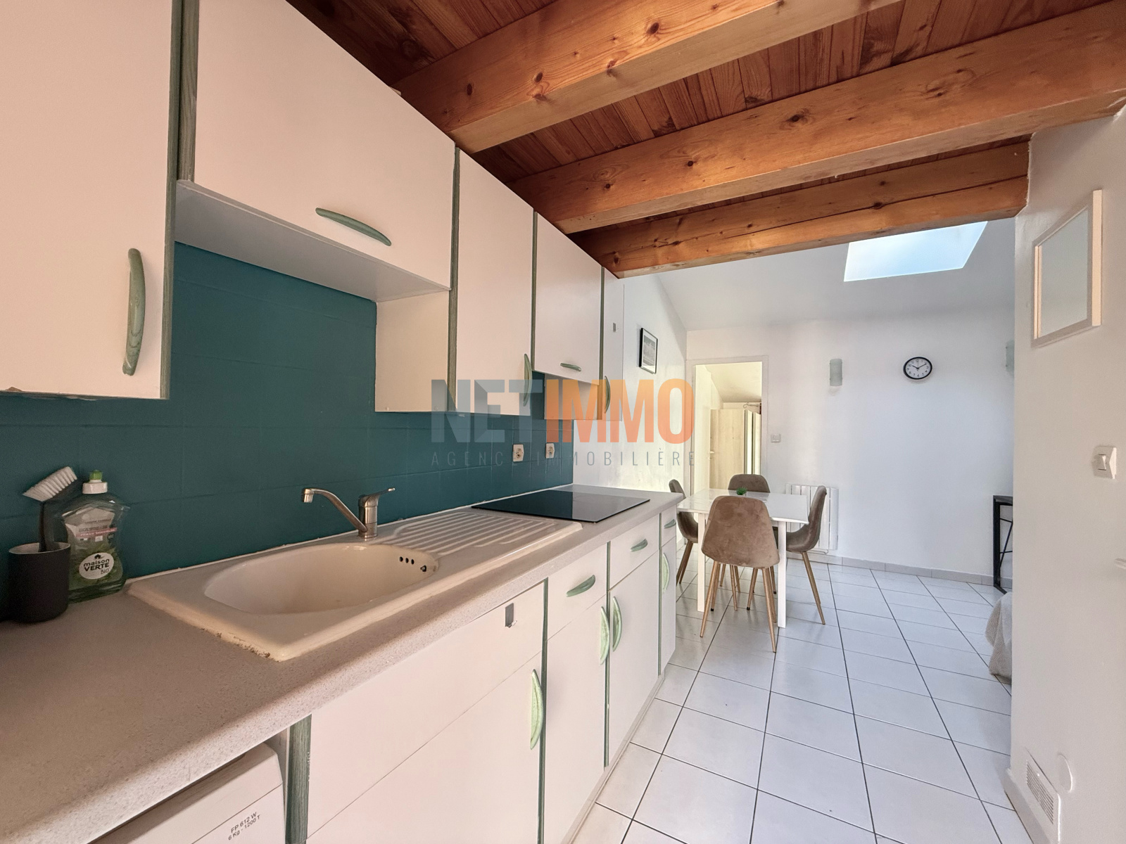 Son F2 indépendant traversant de 29 m2, avec son entrée indépendante et sa cour privative. Il offre une pièce de vie avec sa cuisine équipée et sa mezzanine de stockage, une chambre, une salle de bain et un wc séparé.